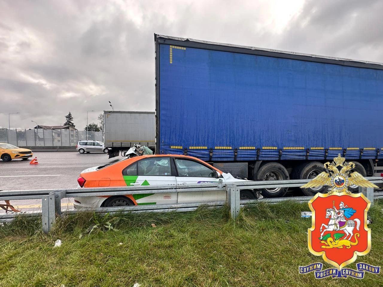Смертельная авария произошла в 7:30 утра на МКАДе 19 августа. Легковушка московского каршеринга влетела в грузовик. Место водителя и пассажира оказались под фурой. В этот момент в салоне Skoda сидели двое. Они погибли.