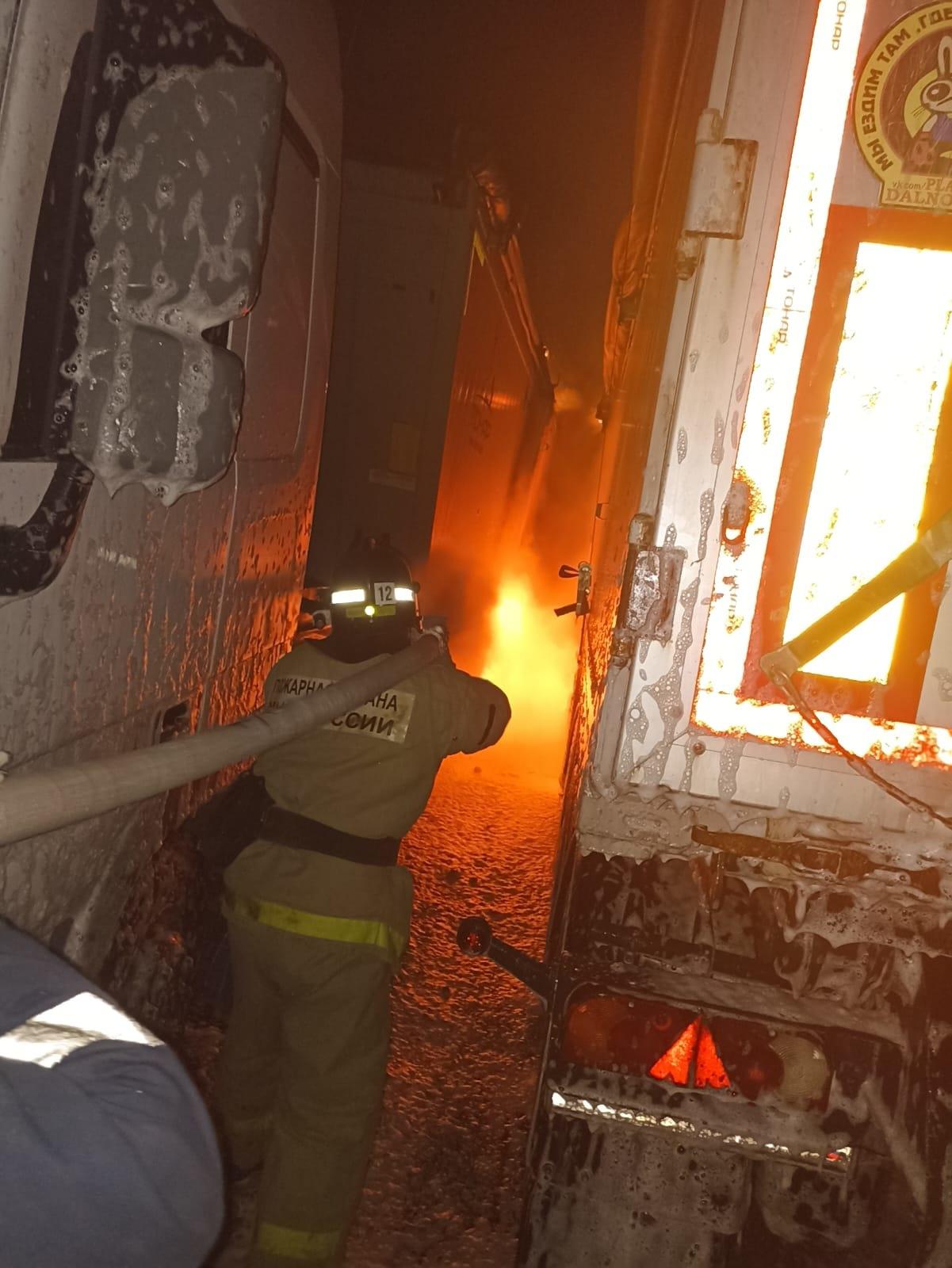 В 03:49 22 августа в оперативную дежурную смену ЦУКС ГУ МЧС России по Курской области поступило сообщение о загорании 5 грузовых автомобилей по адресу: д. 1-я Моква, Курского района.