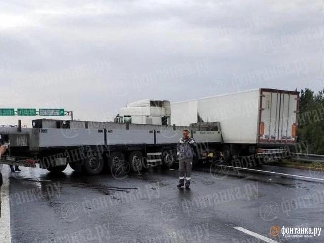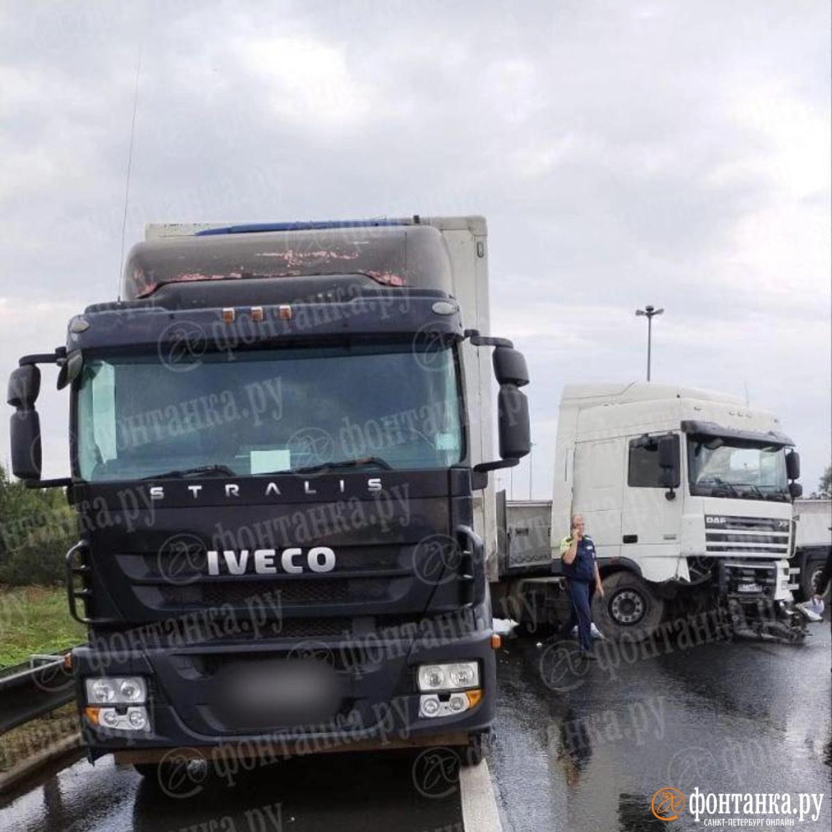 Авария произошла в 8:30 утра, столкнулись два грузовика моделей DAF и IVECO, а также три легковых автомобиля. Пострадавших нет, уточнили в Упрдоре. В 9:30 перегородившую трассу фуру убрали и движение открыли.
