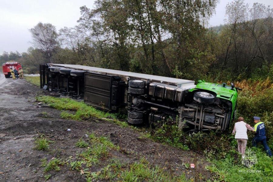 Об этом сообщило ГУ МЧС РФ по региону. Отмечается, что ДТП произошло на 1650 километре дороги в Усть-Катавском городском округе. Автоцистерна, перевозившая нашатырный спирт, опрокинулась в результате съезда автомобиля "Камаз" в кювет.