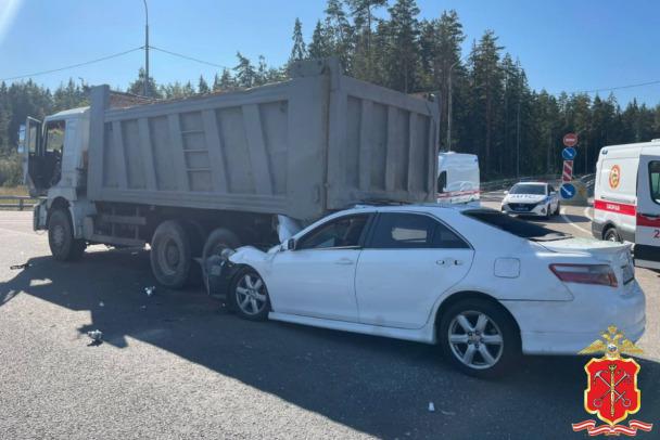 Как сообщает полицейский главк, около половины второго дня 8 сентября на 46-м километре трассы "Скандинавия" произошло ДТП. Водитель "Тойота Камри" двигался в сторону Петербурга и наехал на грузовой автомобиль "Шахман", стоявший в попутном направлении на островке безопасности.