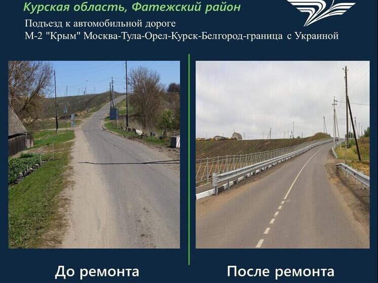 Отремонтирован важный участок автомобильной дороги, соединяющий федеральную трассу М-2 «Крым» с Фатежом Курской области. Он ведет к памятникам культуры, в том числе к музею Георгия Свиридова, в местный музей и к другим учреждениям.