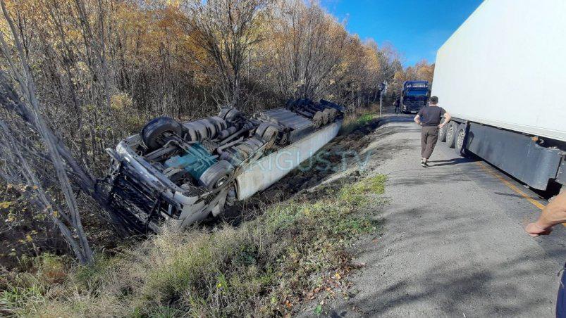 Из-за опрокидывания фуры движение в этом районе было частично затруднено. На месте работали сотрудники ГИБДД.