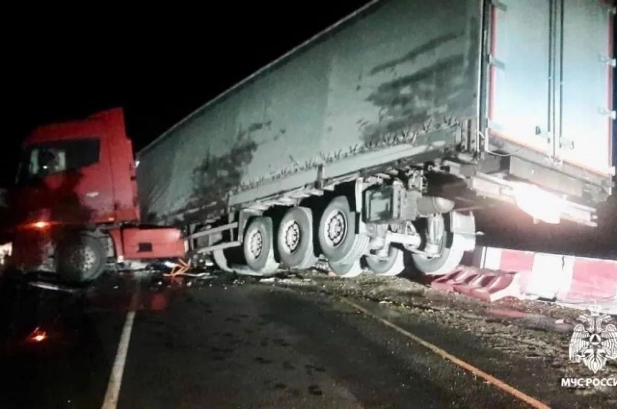 На месте происшествия работали сотрудники 72-й пожарно-спасательной части, осуществляется разгрузка прицепа грузового транспортного средства с целью его дальнейшей эвакуации.