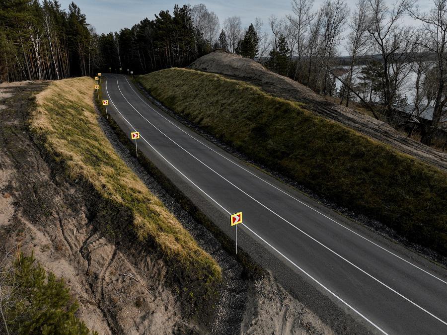 Дорожники уложили слой основания из щебеночно-песчаной смеси и два слоя асфальтобетона. Также рабочие укрепили откосы и очистили кюветы от растительности, устроили водопропускные каналы и барьерное ограждение, установили новые дорожные знаки и нанесли разметку.