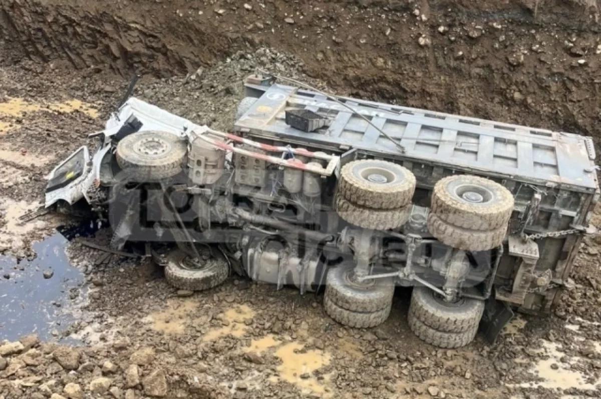 На охотской трассе 1 ноября произошло серьезное ДТП. Большегруз вылетел с дороги и упал в котлован.