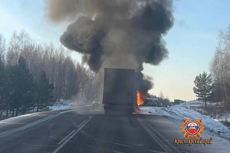 Днем 19 ноября на 895-м километре федеральной трассы Р-255 «Сибирь» в Красноярском крае во время движения вспыхнул грузовик MAN. В региональной Госавтоинспекции уточнили, что фура горит около поворота на село Тертеж.