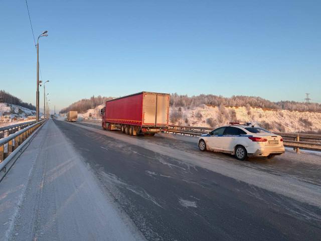 Инцидент произошел на трассе Тюмень – Ханты-Мансийск. Дальнобойщик из Казани ехал в Сургут, однако из-за морозов в его двигателе замерз дизель. Большегруз встал, перекрыв одну полосу движения. Это заметили сотрудники ДПС.