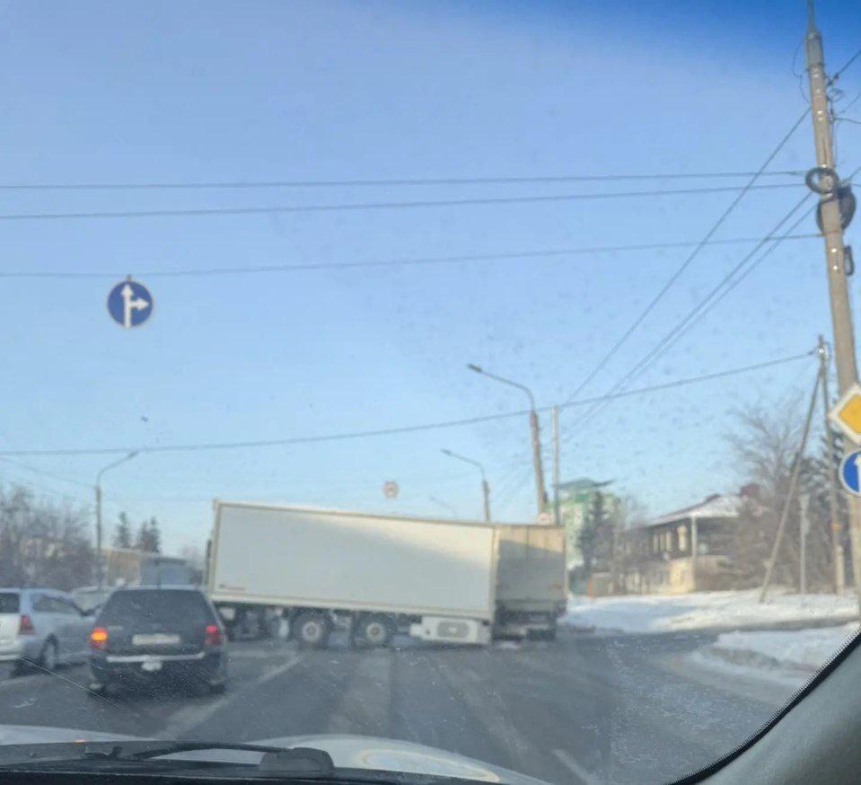 В центре Омска произошло дорожно-транспортное происшествие с участием большегруза с прицепом. На улице Маршала Жукова перед Фрунзенским мостом со стороны 10 лет Октября дорогу перегородила фура. О происшествии сообщили очевидцы.