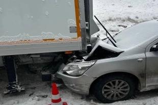 Двигавшаяся за колонной грузовиков легковушка узбекской марки «Ravon» съехала с дороги и протаранила стоявший в кювете «SITRAK».