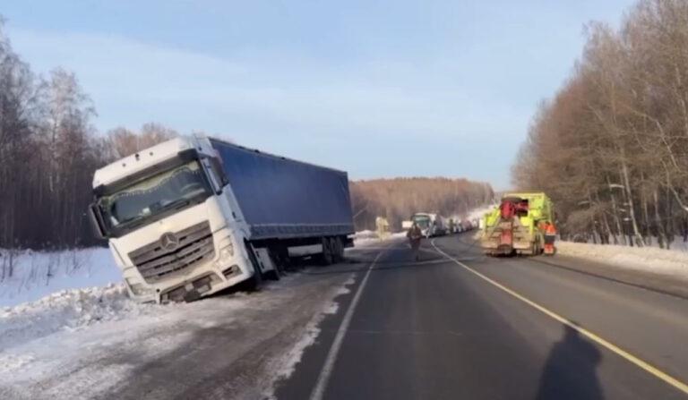 «Водитель пояснил, что в сложных погодных условиях не справился с управлением и потерял контроль над управлением автомобилем. В результате многотонный грузовик стянуло в кювет»