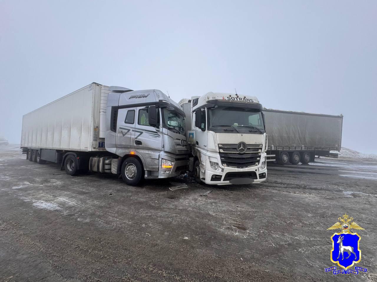 В этот момент водитель грузовика Mercedes-Benz ехал в направлении Тольятти и столкнулся с впереди идущим тягачом Volvo. От удара «немца» развернуло на проезжей части, после чего произошло столкновение с грузовиком FAW. Тот ехал во встречном направлении.