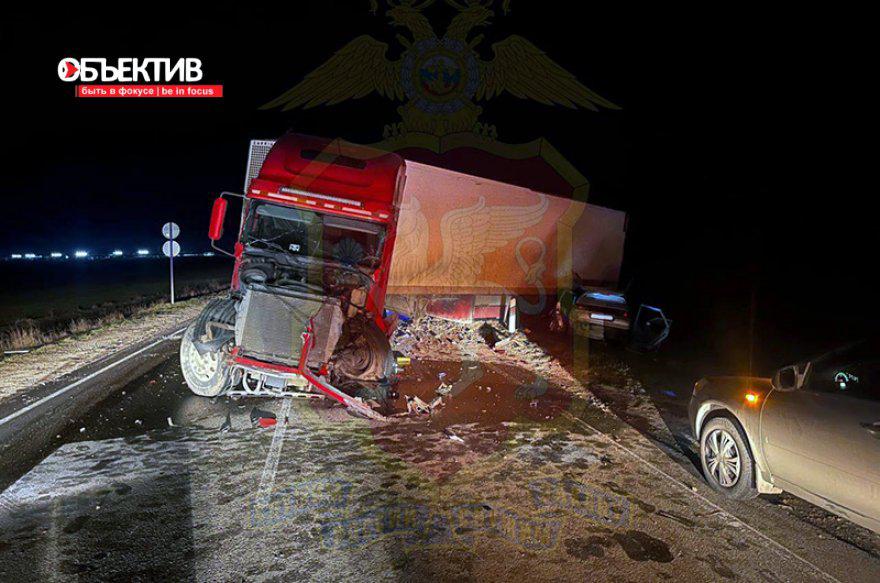 По предварительным данным Госавтоинспекции, в 18:45 вблизи поселка Багерово 34-летний водитель фуры Freightliner с полуприцепом при совершении обгона выехал на полосу встречного движения, где столкнулся с двигавшемся во встречном направлении автомобилем ВАЗ-2112 под управлением 28-летнего водителя.