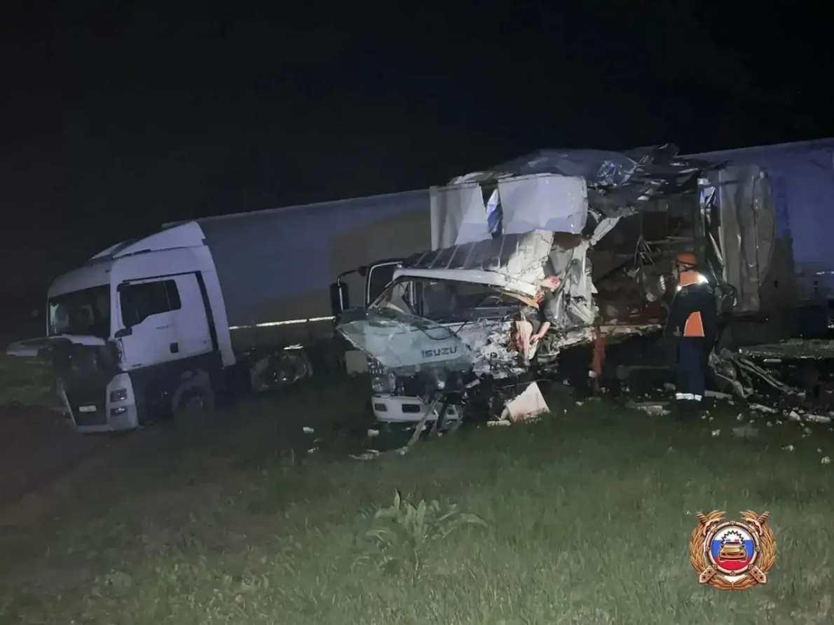Страшная авария произошла 16 апреля около 1:20 в Красногвардейском округе. Сразу три грузовика столкнулись на 13 км автодороги «Преградное-Тахта-Ипатово».