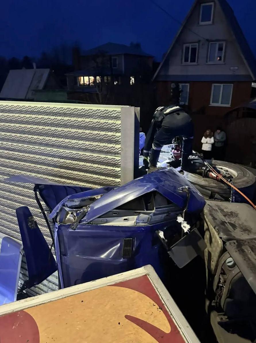 По предварительным данным, 43-летний водитель большегруза Scania не справился с управлением, допустил наезд сначала на разделительный барьер осевого ограждения, затем на шумозащитные щиты, установленные вдоль жилых домов в городе Петушки.