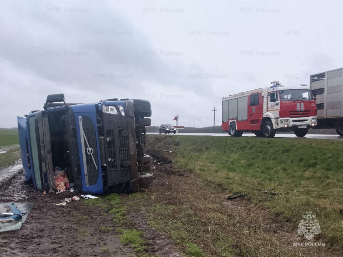 В Орловской области произошло ДТП с большегрузом. Авария случилась вчера, 26 апреля, на территории Кромского района.
