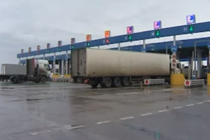 Километровую очередь из фур сняли на границе России и Казахстана (видео)