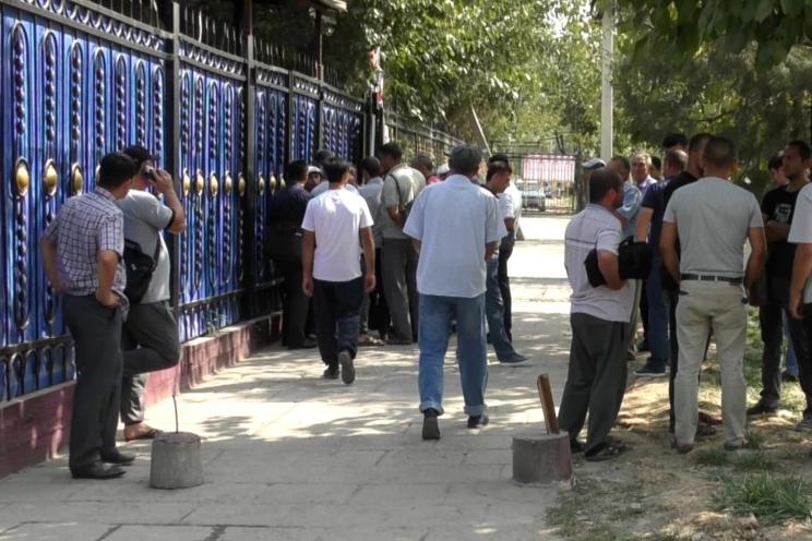 Десятки водителей грузовиков собрались у здания Государственной службы по надзору и регулированию в области транспорта Минтранса Таджикистана и выразили недовольство поборами при получении разрешения на международные автомобильные грузоперевозки.